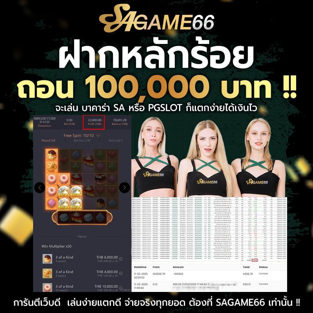 บาคาร่าออนไลน์ SAGAME66 เล่นง่าย จ่ายจริง ได้เงินจริงทุกยอด
